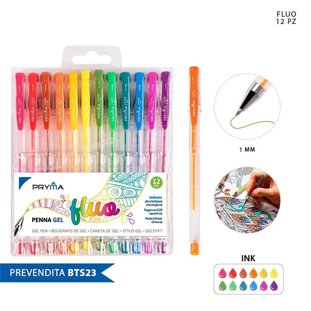 Pryma Penna Gel Fluo 0.8mm (Blister 12 pezzi) è la scelta ideale per dare risalto a appunti, bullet journal e creatività. L inchiostro gel fluorescente garantisce colori pieni e brillanti su carta chiara e scura. La punta da 0,8 mm offre un tratto deciso ma scorrevole, perfetto per scrittura e decorazione. Il design confortevole riduce l affaticamento nelle sessioni prolungate. Prodotto affidabile per scuola, ufficio e progetti artistici.