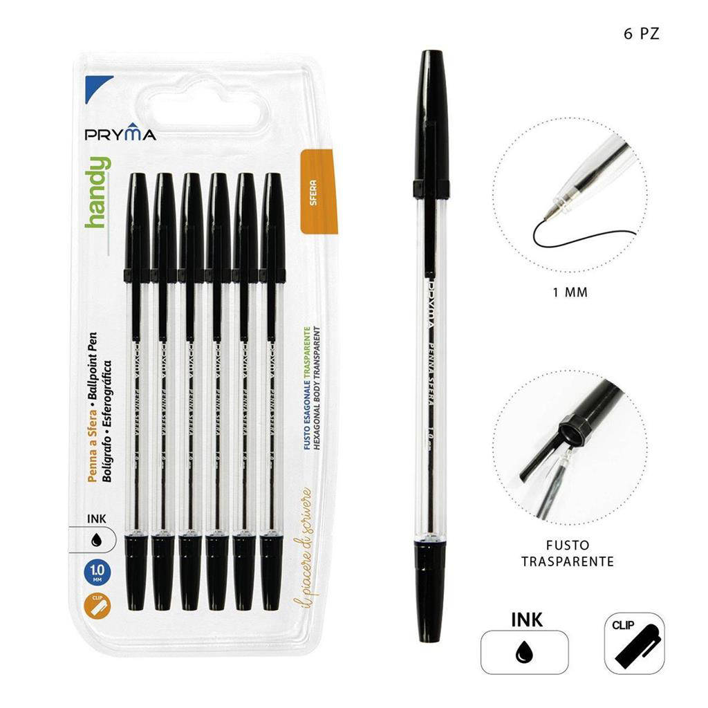 Scopri Pryma Penna Sfera Handy 1 mm, confezione da 6 pezzi colore nero, la scelta ideale per scrittura quotidiana precisa e scorrevole. Il tratto da 1 mm garantisce una resa decisa e leggibile su qualsiasi tipo di carta. Grazie all'impugnatura ergonomica antiscivolo, scrivere a lungo diventa più confortevole e naturale. L'inchiostro nero a rapida asciugatura riduce sbavature e aloni, perfetto per ufficio, scuola e casa. Ogni penna è pensata per durare, offrendo affidabilità costante ad ogni utilizzo.
