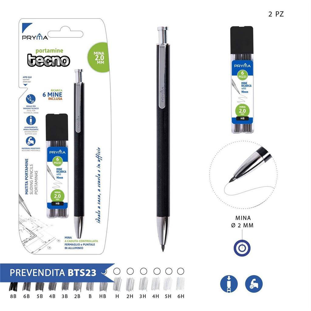 Scopri Pryma Portamine Met.Tecno con ricarica inclusa di 6 mine HB da 2 mm, codice 0211058: lo strumento di scrittura robusto e preciso per professionisti, studenti e creativi. Il corpo metallico offre equilibrio e controllo, mentre il tratto spesso da 2 mm garantisce segni netti, visibili e cancellabili. Ideale per schizzi tecnici, disegni, annotazioni e marcature su carta e cartoncino. Design curato per un uso quotidiano confortevole e affidabile. Unisce resistenza, eleganza e funzionalità in ogni dettaglio.