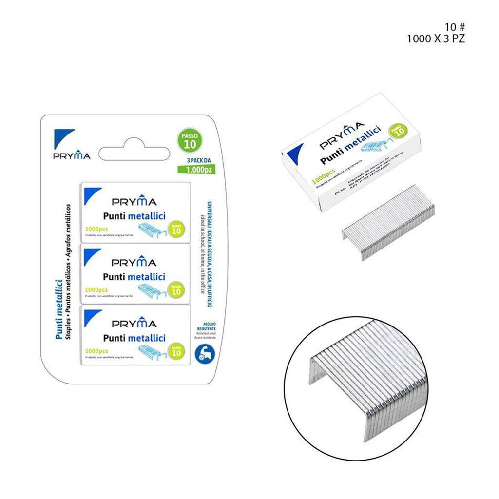 Scopri i Pryma Punti Metallici Passo 10, confezione da 1000 punti per blister, set da 3 pezzi codice 0144316: la soluzione affidabile per rilegare in modo pulito e duraturo. Progettati per prestazioni costanti, questi punti metallici garantiscono fissaggi netti su carta, cartoncino e documenti multipli. Compatibili con la maggior parte delle cucitrici passo 10, offrono inserimento fluido e riduzione degli inceppamenti. Ideali per uffici, scuole, studi professionali e uso domestico avanzato. Scegli qualità e convenienza con una scorta ottimizzata per non rimanere mai senza.