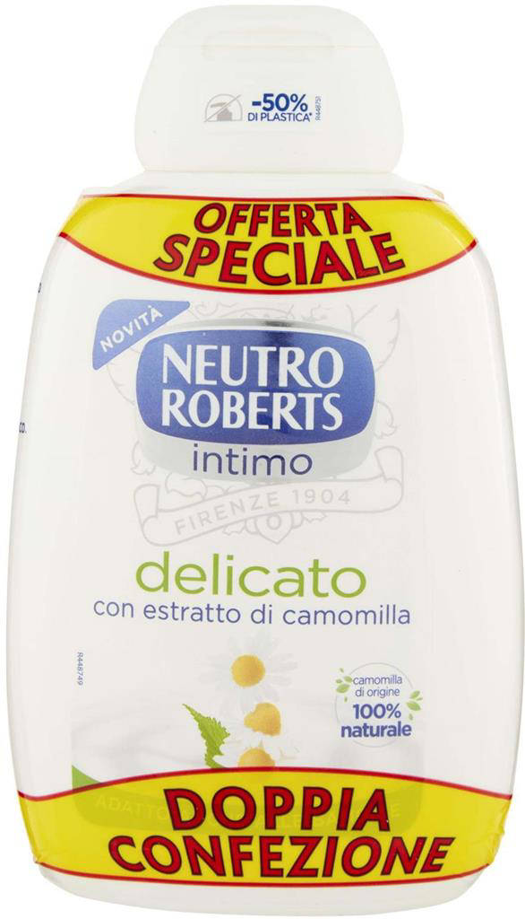 Scopri ROBERTS INTIMO 2 x 200 ml Delicato Camomilla, il detergente intimo studiato per prendersi cura quotidianamente della pelle più sensibile. La sua formula con Estratto di Camomilla aiuta a lenire e calmare, offrendo una sensazione di freschezza che dura tutto il giorno. Il pH bilanciato supporta il naturale equilibrio della zona intima, rispettando la flora batterica. Ideale per l uso quotidiano e per tutte le età, anche nei periodi di maggiore sensibilità. La confezione duo da 200 ml garantisce praticità e convenienza per una routine completa.