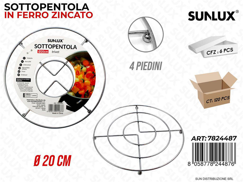 Scopri il Sottopentola in Ferro di Zinco D.20 cm, la soluzione elegante e resistente per proteggere il tuo tavolo dal calore. Studiato per l uso quotidiano e per le occasioni speciali, unisce robustezza e stile minimal. Il design rotondo da 20 cm si adatta perfettamente a pentole, teglie e caffettiere. La finitura in zinco assicura lunga durata e facile pulizia. Ideale per cucine moderne, ristoranti e catering.