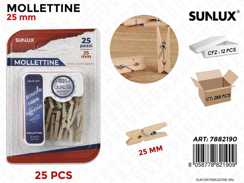 Scopri le Sunlux Blister Mollettine in legno, set da 25 pezzi da 25 mm, confezione da 12 blister: la soluzione pratica e versatile per casa, ufficio e creatività. Realizzate in legno naturale, offrono un tocco caldo e autentico a ogni utilizzo. La loro dimensione compatta le rende perfette per fissare piccoli oggetti, foto, etichette o decorazioni. Sono ideali per progetti DIY, packaging personalizzati e per organizzare documenti con stile. Confezionate in pratici blister da 25 pezzi ciascuno, sono facili da riporre, contare e distribuire.
