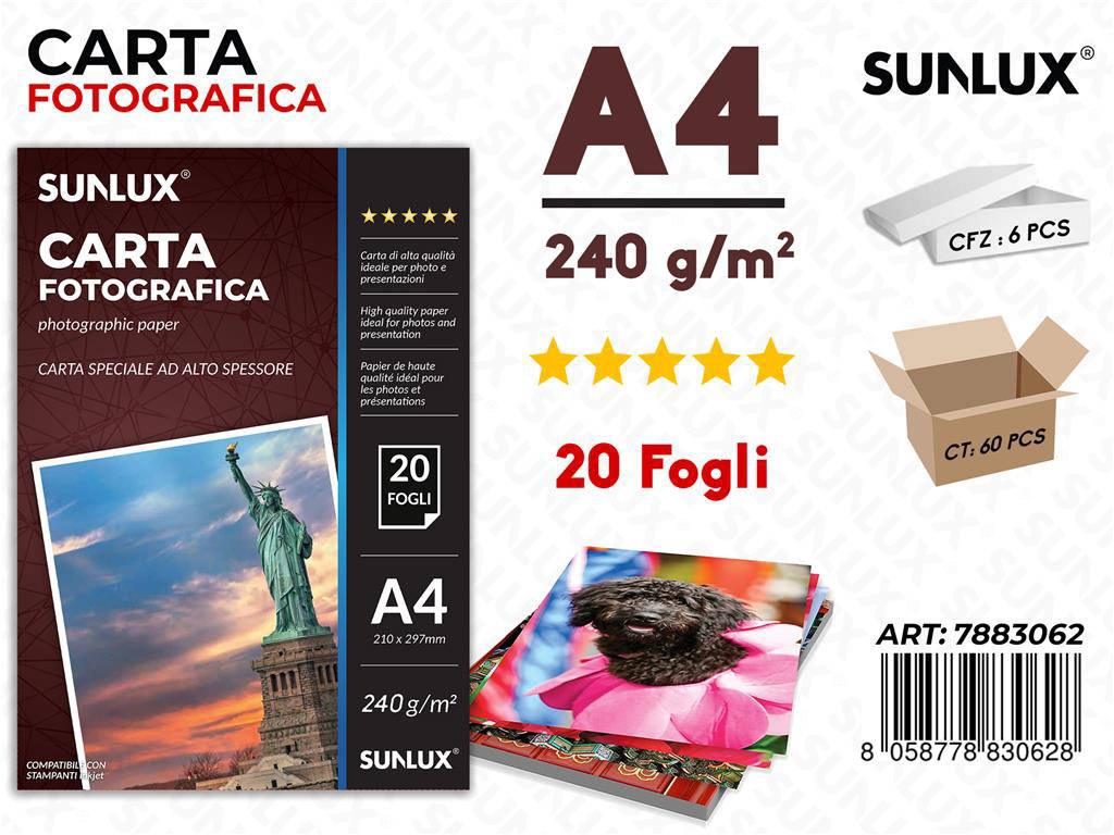Sunlux - Carta Fotografica A4 240 g/m , 20 fogli (confezione da 6)
