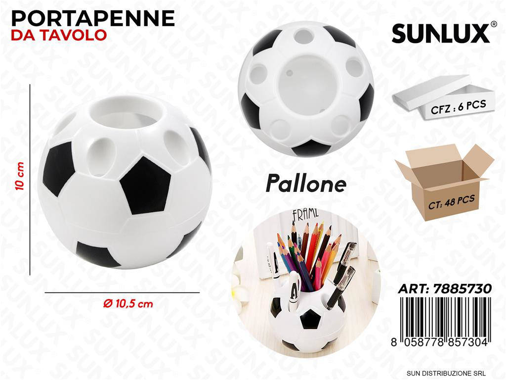 Scopri Sunlux Portapenne Pallone, l'organizer da scrivania che unisce stile sportivo e funzionalità intelligente. Con 6 scomparti dedicati, ti aiuta a mantenere penne, matite e piccoli accessori sempre in ordine. Il design a pallone cattura l'attenzione, trasformando la tua postazione in uno spazio dinamico e divertente. Con diametro 10,5 cm e altezza 10 cm, offre una capienza ottimale senza ingombrare. Venduto in confezione da 6 pezzi, è ideale per uffici, aule, studi e regali coordinati.