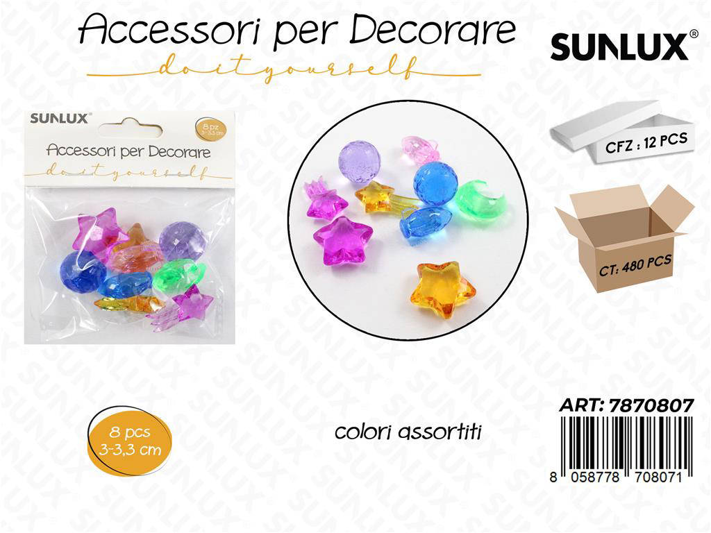 Scopri il set Sunlux Accessori per Decorazioni Assortiti, confezione da 8 pezzi, dimensioni 3 3,3 cm per pezzo. Ideale per abbellire progetti creativi, packaging regalo e allestimenti stagionali. La misura compatta li rende perfetti per scrapbooking, diorami, centrotavola e vetrine. La selezione assortita offre varietà di forme e finiture per un impatto visivo immediato. Un must per hobbisti, artigiani e negozi che desiderano dettagli curati e coordinati.