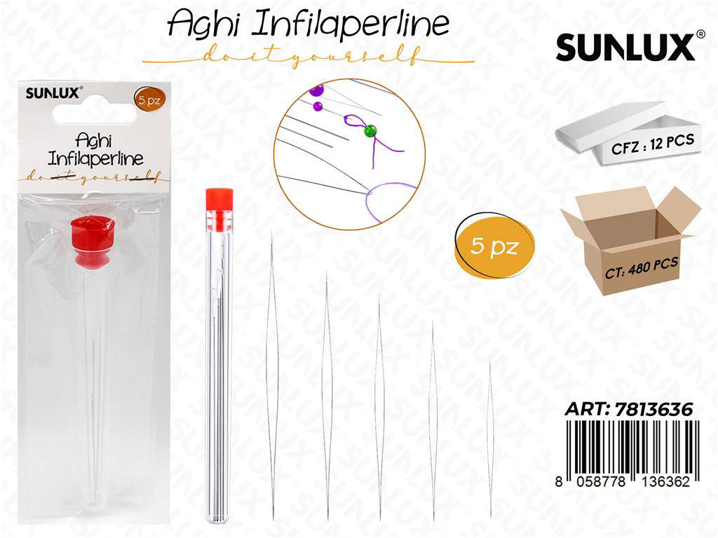 Scopri Sunlux Aghi Infilaperline 5Pcs Ass./Pz da 12**, il set indispensabile per hobbisti e professionisti della bigiotteria. Progettati per infilare perline con precisione, questi aghi sottili riducono gli sprechi e velocizzano ogni lavorazione. La qualità dei materiali garantisce resistenza e flessibilità anche con utilizzo prolungato. Ideali per creare collane, bracciali e ricami su tessuti delicati. Un alleato affidabile per ottenere finiture pulite e professionali.