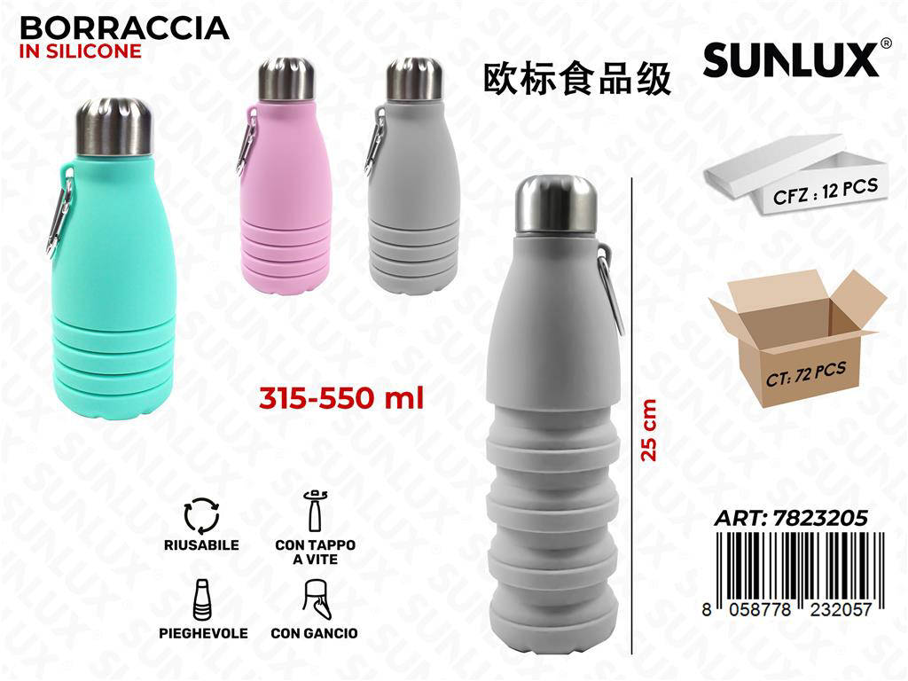 Scopri il Sunlux Bicchiere Pieghevole in silicone, l'accessorio intelligente per idratarti ovunque con praticità e stile. Realizzato in silicone alimentare di alta qualità, è resistente, flessibile e facile da pulire. La capacità variabile 315 550 ml lo rende perfetto per acqua, bevande calde o fredde. Il design salvaspazio si ripiega fino a diventare ultra-compatto, ideale per borsa, zaino e viaggio. Una soluzione igienica e riutilizzabile per ridurre la plastica monouso, adatta per ufficio, sport e outdoor.