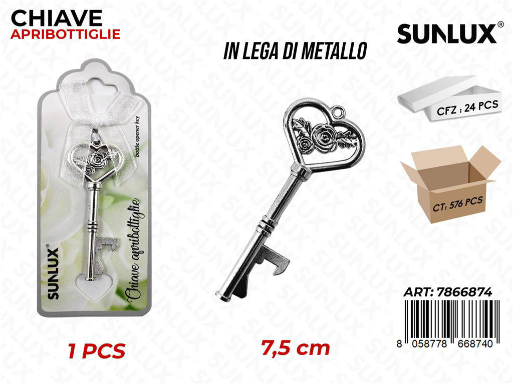 Scopri SUNLUX Chiave Apribottiglie in metallo da 7,5 cm, l accessorio compatto e resistente perfetto per bar, eventi e uso domestico. Il design a forma di chiave unisce stile e funzionalità, rendendolo facile da usare e da riporre. La struttura in metallo garantisce durata nel tempo e apertura fluida di tappi a corona. Il formato vendita include confezione da 24 pezzi, ideale per rivenditori ed eCommerce. Un gadget pratico, economico e perfetto anche come omaggio promozionale.