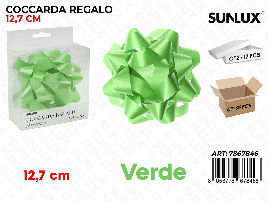 Rendi ogni dono memorabile con la Sunlux Coccarda Regalo Verde da 12,7 cm, confezione da 12 pezzi. Il suo colore verde brillante dona un tocco fresco e festoso a pacchi regalo, cesti e confezioni speciali. Realizzata con nastro resistente e lucido, mantiene la forma perfetta anche durante il trasporto. Facile da applicare, è ideale per negozi, e-commerce e uso domestico. Un dettaglio elegante che valorizza ogni presentazione, in ogni stagione.