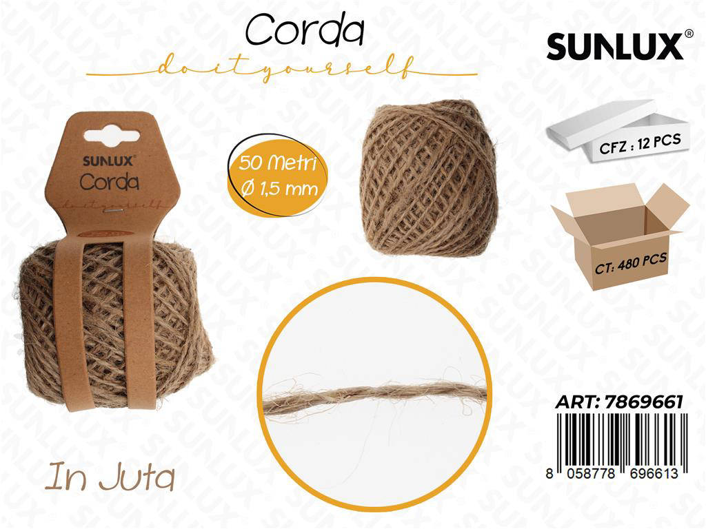 Scopri la Sunlux Corda in Juta 1,5 mm, il filo naturale ideale per decorazioni, packaging creativo e piccoli lavori di legatoria. Realizzata in fibra 100% juta, offre resistenza, flessibilità e un look eco-friendly perfetto per progetti artigianali. Il formato da 50 metri garantisce un uso prolungato senza interruzioni. La texture naturale valorizza bomboniere, ghirlande, etichette e allestimenti rustici. Una scelta affidabile per hobbisti, florist, negozi e professionisti del fai-da-te.