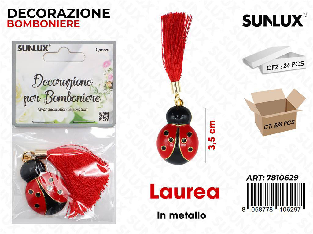 Festeggia la tua laurea con stile grazie a Sunlux Dec. Bomb. Laurea Metallo 3.5 cm, confezione da 24 pezzi. Queste eleganti decorazioni in metallo aggiungono un tocco raffinato a bomboniere, segnaposto e confezioni regalo. La finitura lucida e il design iconico del tocco di laurea valorizzano ogni allestimento. Perfette per eventi universitari, party a tema e regali personalizzati. Qualità, praticità e resa scenica in un unico accessorio.