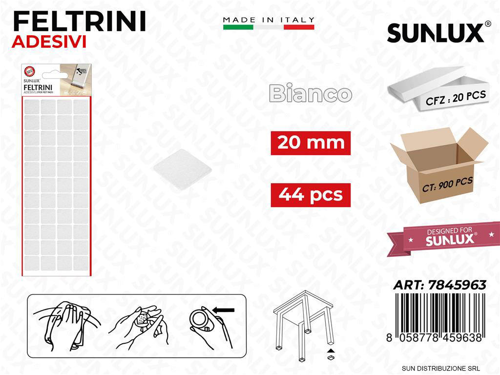 Perfetti per sedie, sgabelli, tavoli, cassettiere e complementi d'arredo. Un piccolo dettaglio che fa una grande differenza nella cura dei tuoi ambienti. Prova i Sunlux Feltrini Adesivi Quadrati e scopri la qualità che protegge ogni giorno.