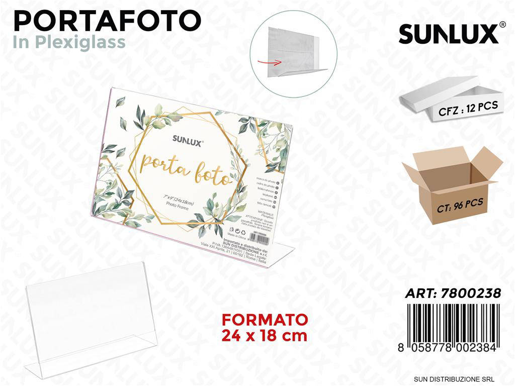 Il Sunlux Portafoto in plexiglass è la scelta ideale per chi vuole unire stile, durata e praticità. Grazie alla sua finitura lucida e alla robustezza del materiale, protegge le immagini e le mette in risalto. Il formato 24x18 cm è tra i più richiesti per la stampa fotografica e per piccole grafiche. Sceglilo per rendere ogni scatto protagonista, con la sicurezza di un prodotto affidabile e curato nei dettagli.