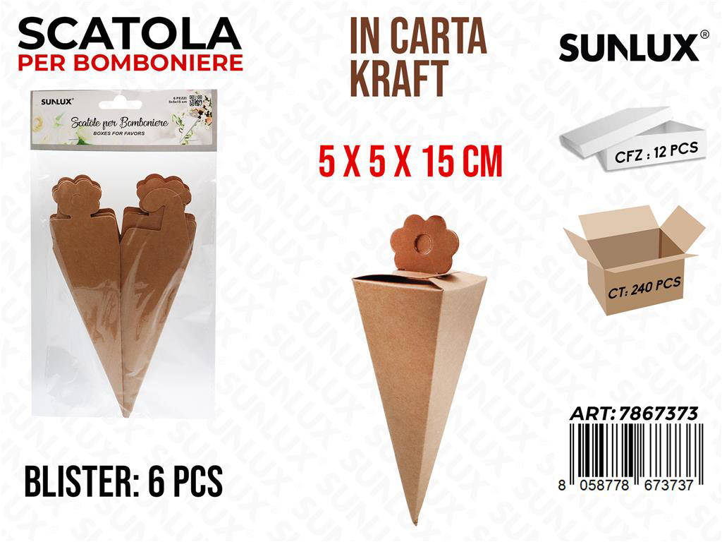 Scopri la Sunlux Scatola Bomboniere Kraft, set da 6 pezzi, dimensioni 5 5 15 cm, perfetta per eventi eleganti e sostenibili. Il design in cartoncino kraft naturale valorizza confetti, piccoli cadeaux e prodotti artigianali. Facile da montare, offre una presentazione pulita e professionale per matrimoni, battesimi, comunioni e feste. La struttura robusta protegge il contenuto durante il trasporto. Un packaging versatile che esalta il tuo brand o la tua cerimonia con stile minimal e contemporaneo.