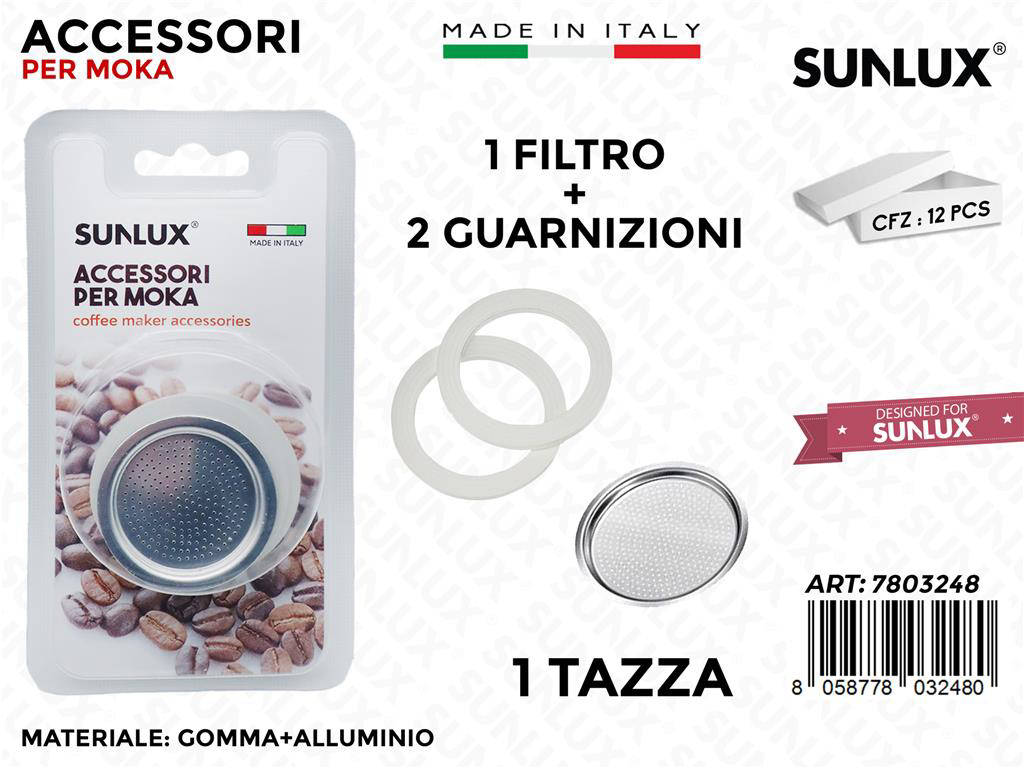 Scopri il Sunlux Set per Moka da 1 tazza (3 pezzi assortiti), pensato per gli amanti del vero caffè all italiana. Compatto, pratico e ideale per l uso quotidiano, garantisce un espresso corposo e profumato in pochi minuti. Il design essenziale si adatta a qualsiasi cucina, mentre i componenti selezionati assicurano affidabilità e semplicità d uso. Perfetto per chi vive da solo, per l ufficio o per un caffè veloce dopo pranzo. Un piccolo set, grandi risultati: porta a casa l autentica esperienza moka.