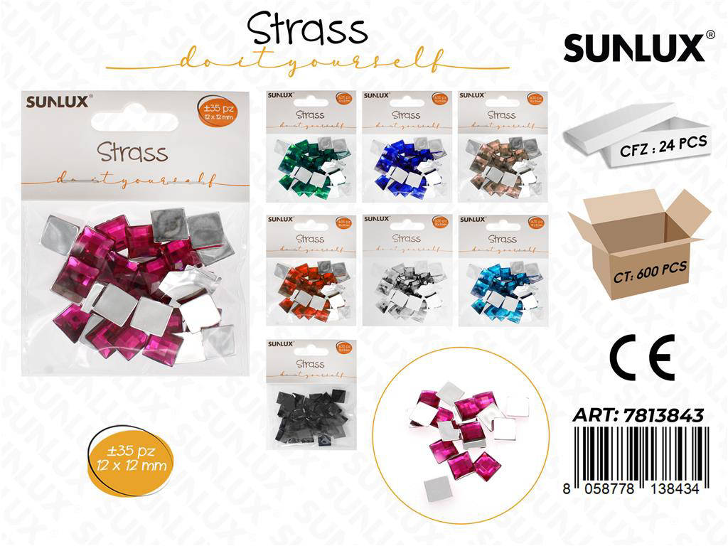 Con Sunlux Strass Col. Ass. trasformi rapidamente prodotti e progetti in pezzi unici dall effetto wow. La misura 12 12 mm garantisce visibilità senza appesantire il design. L assortimento colori offre libertà creativa e una resa estetica professionale. Scegli la qualità Sunlux per un look brillante, coerente e durevole.