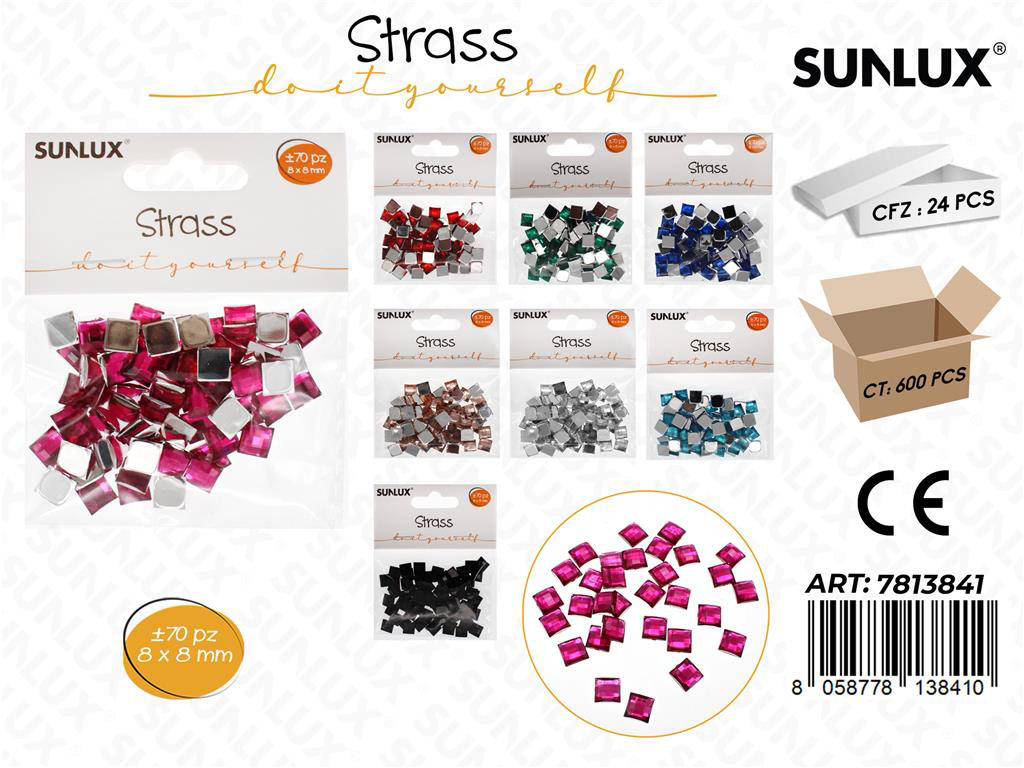 Scegli gli strass Sunlux per un tocco di luce che resiste nel tempo e valorizza ogni dettaglio. La combinazione di colori misti e dimensione 8x8 mm rende semplice creare pattern armonici e accattivanti. Progettati per un adesione affidabile con colle universali o specifiche per tessuti. Trasforma subito idee e progetti in creazioni scintillanti e professionali.