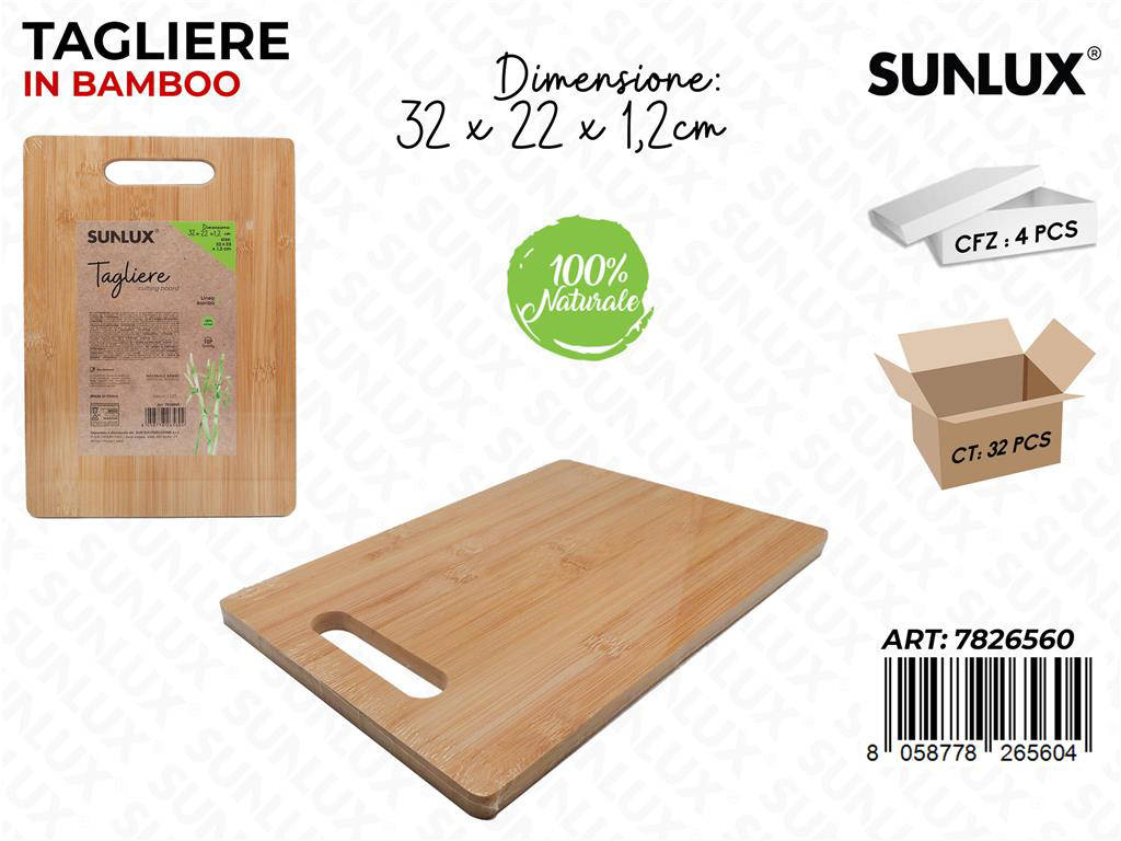 Scopri il Sunlux Tagliere in Bamboo 32 22 1,2 cm, il compagno ideale per ogni cucina moderna. Realizzato in bambù naturale, un materiale resistente e sostenibile, offre una superficie stabile per tagliare, tritare e servire. Il set comprende 4 pezzi, perfetto per organizzare la preparazione degli alimenti o per cucine professionali e domestiche. Il design sottile da 1,2 cm lo rende leggero ma solido, facile da maneggiare e riporre. Elegante e funzionale, valorizza il tuo piano di lavoro con un tocco naturale.