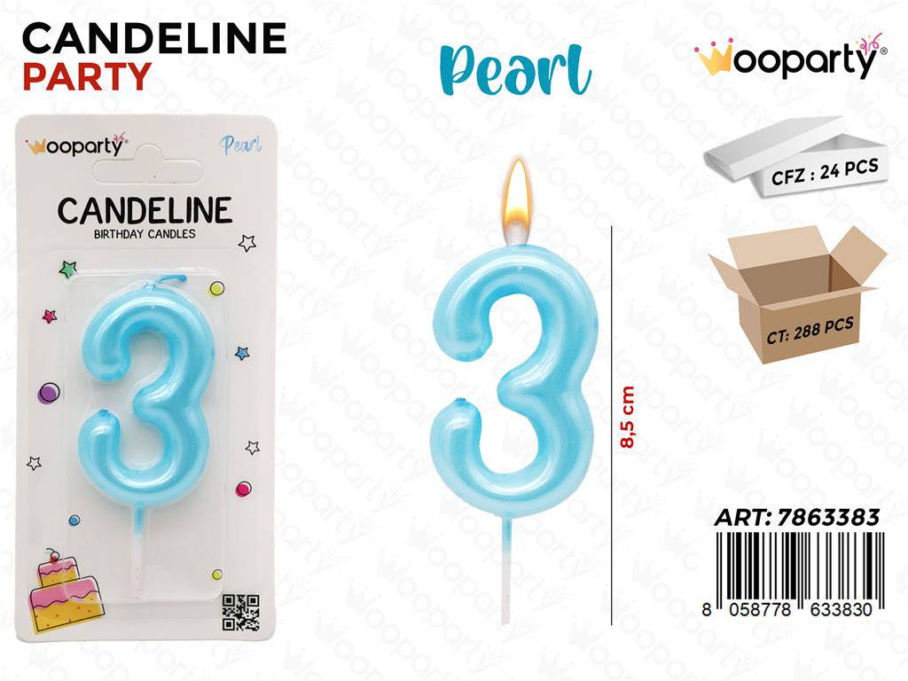 Festeggia in grande stile con le Wooparty Candeline Celesti Pearl Numero 3, altezza 8,5 cm, confezione da 24 pezzi. La finitura perlata dal look premium dona un tocco brillante e fotogenico alle tue torte. Ideali per compleanni, anniversari e feste a tema, assicurano coerenza cromatica e impatto visivo. Facili da posizionare, bruciano in modo uniforme offrendo una fiamma stabile. Un set professionale pensato per pasticcerie, party planner e famiglie che vogliono risultati impeccabili.