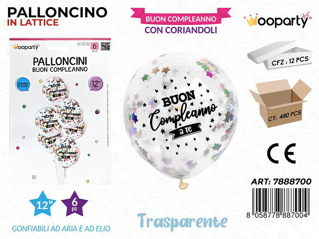 Scopri i Wooparty Palloncini B. Compl. con coriandoli da 12'': l'accessorio perfetto per trasformare ogni festa in un evento memorabile. Ogni confezione include 6 palloncini di alta qualità, ideali per compleanni, eventi e decorazioni a tema. Il design trasparente con coriandoli interni crea un effetto scenografico immediato e Instagram-ready. Facili da gonfiare e abbinare, aggiungono luce, colore e stile a qualsiasi ambiente. Scegli Wooparty per una decorazione d'impatto e senza stress.