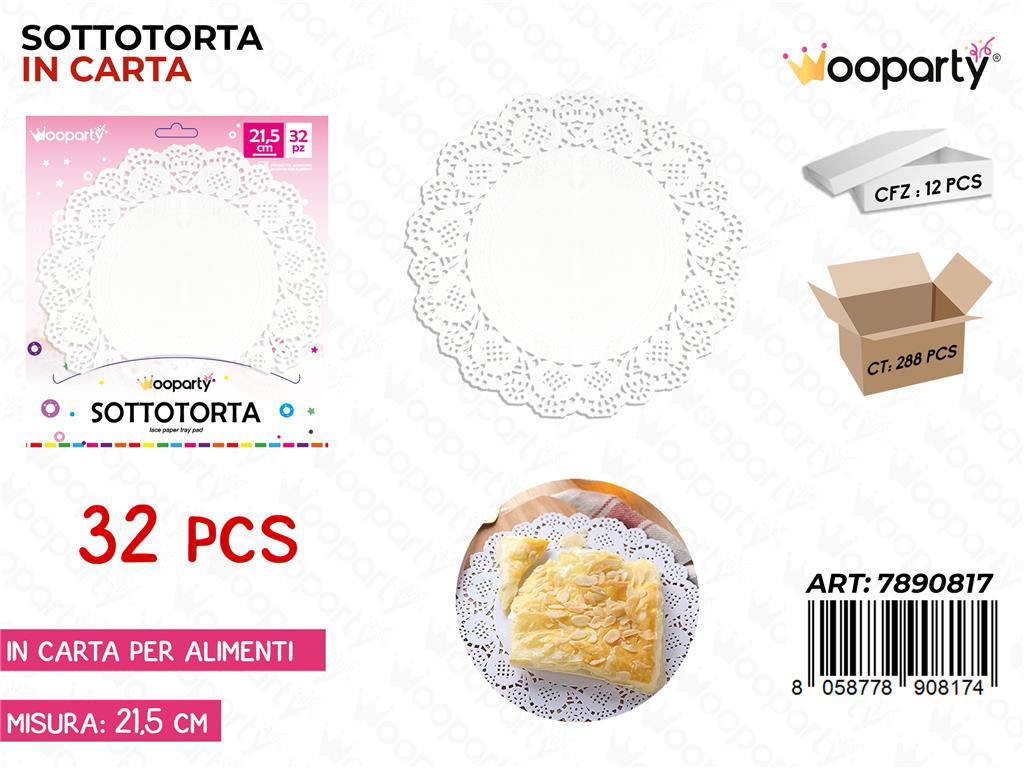 Rendi impeccabile ogni presentazione con i sotto torta in carta Wooparty D.21,5 cm, la soluzione elegante e pratica per buffet, feste e pasticceria. Realizzati con carta di qualità, valorizzano torte, crostate, monoporzioni e finger food con un tocco professionale. Il bordo decorato aggiunge stile, mentre il formato standard si adatta ai vassoi e ai piatti più comuni. Ideali per uso domestico e professionale, garantiscono igiene e ordine sul tavolo. Confezione risparmio: 32 pezzi per pacco, pratica e conveniente.