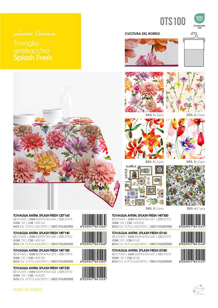 Zambetti Tov Ant Splash Fresh 140x140 è la scelta intelligente per chi desidera unire estetica e funzionalità. La protezione antisplash ti aiuta a prevenire aloni e macchie, mantenendo la tavola impeccabile più a lungo. Ottima per pranzi in famiglia, cene con amici e uso intensivo, dentro e fuori casa. Porta in tavola freschezza, ordine e praticità ogni giorno.
