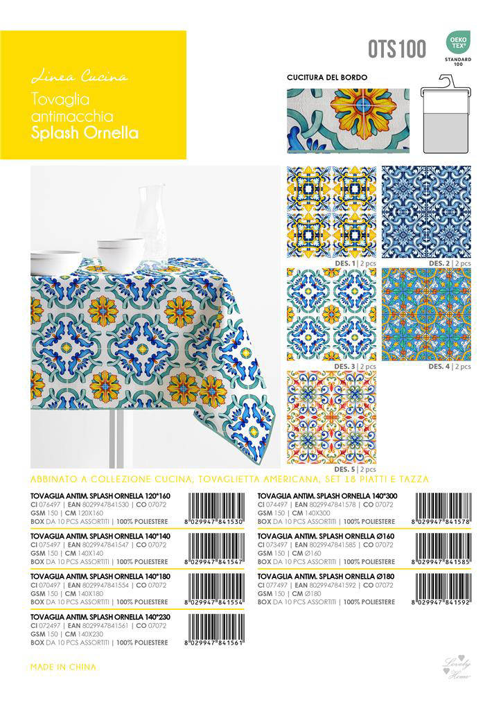 Con Zambetti Tov Ant Splash Ornella Rd 160 porti in tavola praticità e bellezza senza compromessi. La protezione anti-macchia riduce i tempi di cura, mentre il design Ornella rende ogni mise en place più ricercata. Ideale per famiglie, ospitalità e chi ama una casa sempre ordinata. Scegli una tovaglia affidabile, elegante e pronta a semplificare la tua routine.